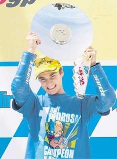 C clair que qqun qui s'exprime et laisse eclater sa joie c quand meme beaucoup plus sympa. En tout cas un grand bonhomme ce pedrosa sur la piste et c'est l'essentiel. Je suis curieux de le voir en motogp car c'est celui que je crois le plus capable de s'en tirer dans cette categorie dans les jeunots (elias, depuniet, stoner, rolfo).