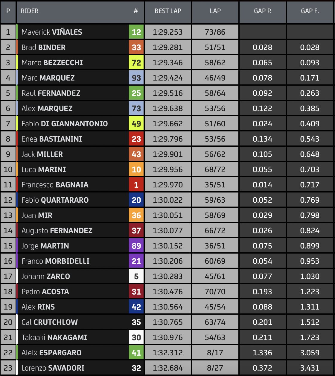 Marini pas trop trop mal, et déjà devant Mir.