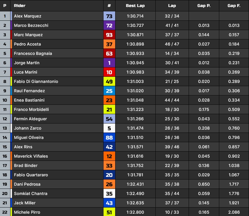 Sinon Marini est 7e, pas si mal pour un "mauvais" et en revanche, même s'il est 6e, je suis déçu d'Aldeguer dont j'attendais mieux.