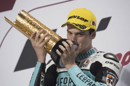 Comme on l’a souvent vécu au Qatar, nous avons eu le droit à une course en paquet pour la catégorie Moto3. Le grand vainqueur du jour a été Joan Mir, ce qui n’est pas une petite surprise car l’espagnol a fini meilleur rookie en 2016. Pour sa deuxième victoire en carrière, Mir a réussi dans le dernier tour à creuser un tout petit écart, suffisant pour ne pas se faire déborder lors de la longue ligne droite. Avec huit pilotes en moins de une seconde, nous avons retrouvé les courses que nous aimons.
