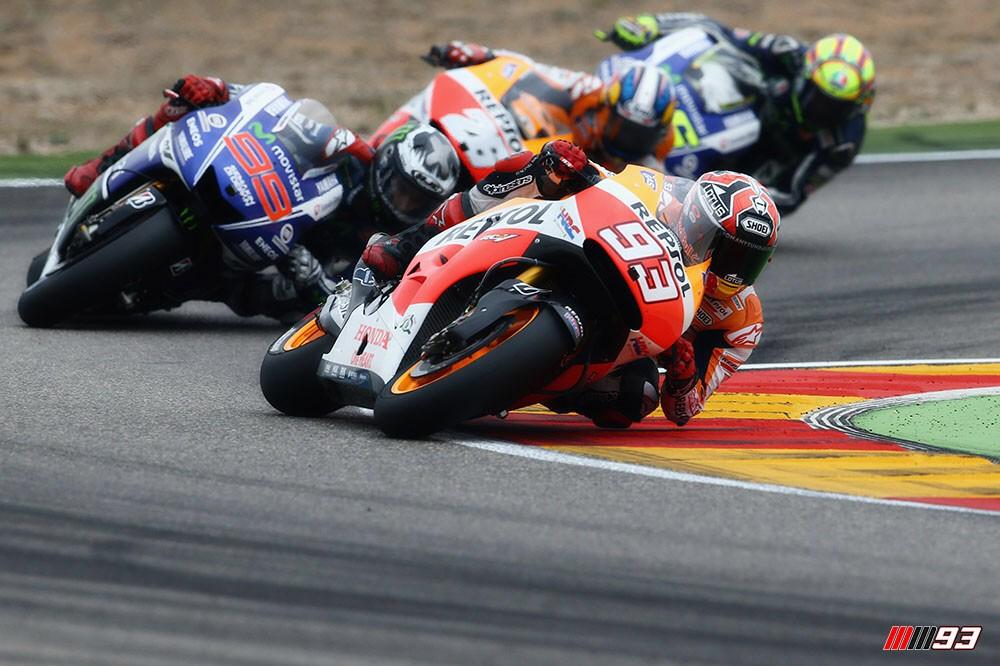 - Márquez finit entre la 8e et la 11e places, devant Pedrosa. Rossi n'a pas plus de trois places d'avance et Lorenzo ne gagne pas.